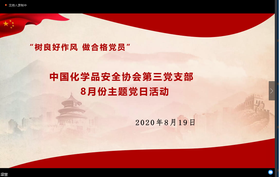 8月19日,中國化學(xué)品安全協(xié)會第三黨支部通過視頻會議的形式,組織開展了8月主題黨日。