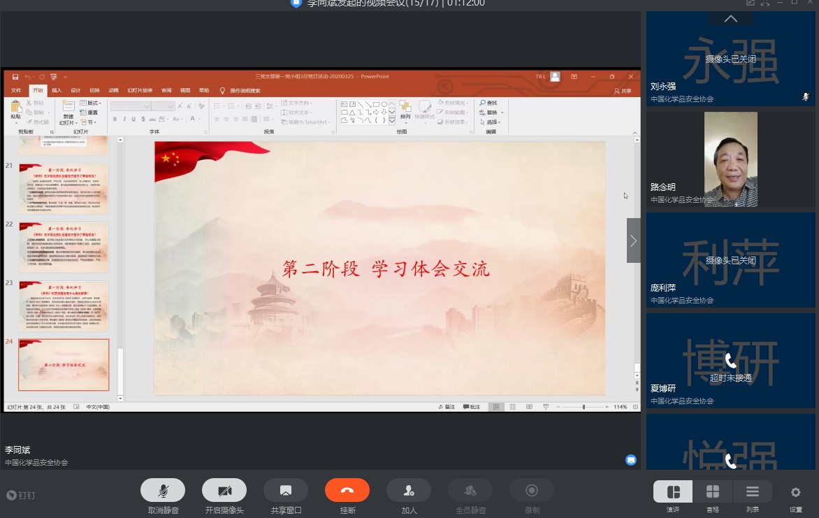 2020年3月25日晚上,中國化學(xué)品安全協(xié)會第三黨支部第一黨小組召開成立之后的第一次學(xué)習(xí)會議,專題學(xué)習(xí)《中國共產(chǎn)黨黨和國家機(jī)關(guān)基層組織工作條例》(以下簡稱《條例》),并進(jìn)行研討交流。