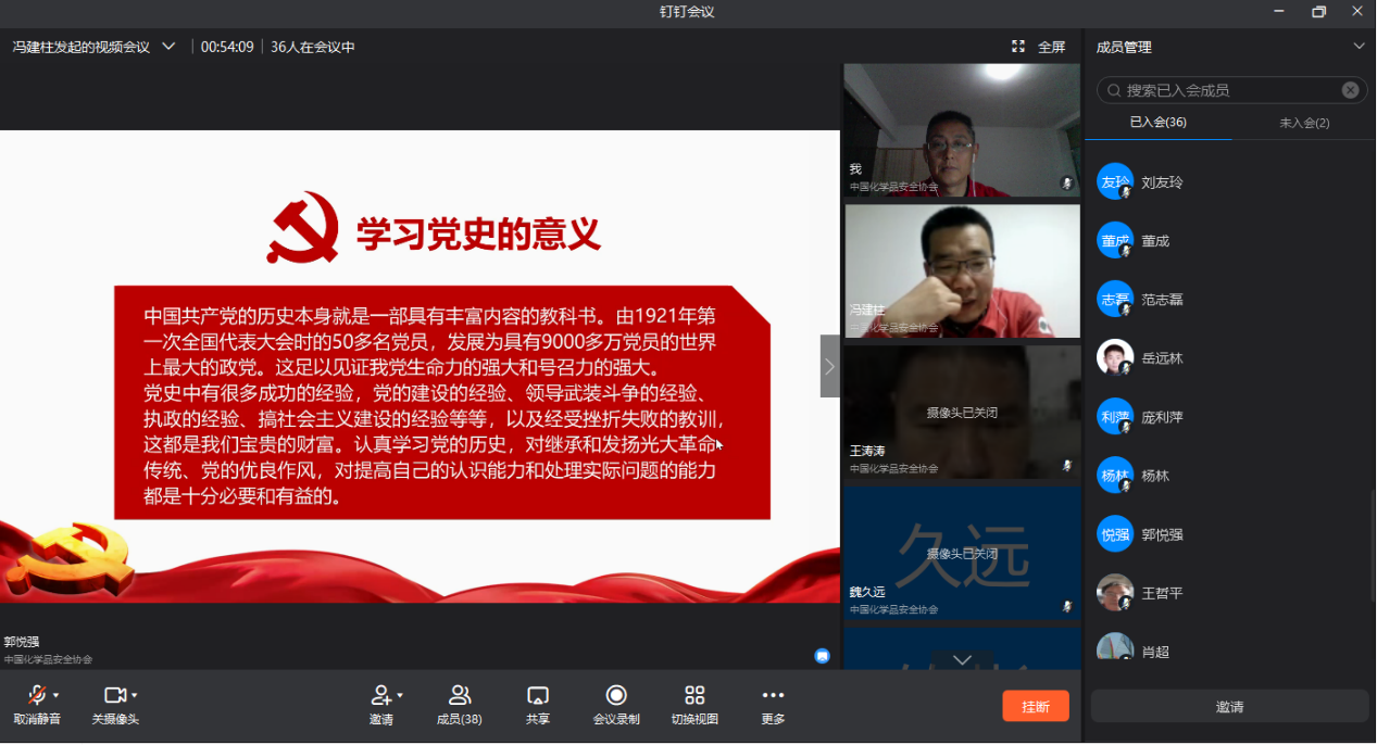 4月21日晚,協(xié)會第三黨支部以“學黨史 強素質(zhì) 做表率”為主題,通過釘釘視頻會議的方式組織開展4月主題黨日。