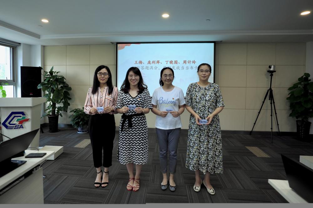 本次主題黨日還組織觀看了《習(xí)近平講故事》等微黨課視頻,通報(bào)了7月支部工作APP和CCSA安學(xué)網(wǎng)答題排名情況,并為7月CCSA安學(xué)網(wǎng)答題滿分人員進(jìn)行頒獎(jiǎng),繼續(xù)開(kāi)展“5+5”學(xué)習(xí),以提高全體成員學(xué)習(xí)成效。