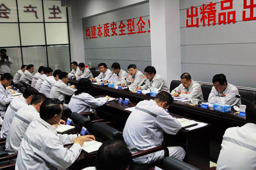 張明一行于8點10分首先參加了多倫煤化工公司安全生產(chǎn)例會,聽取了多倫公司當天安全生產(chǎn)情況。對多倫煤化工公司安全生產(chǎn)工作一直以來取得的成績給與了充分肯定;通報了此次檢查目的為了落實國務院和上級“吸取事故教訓開展隱患排查治理”的要求;總結分析了近期“5.31”、“6.02”、“6.03”三起重特大火災爆炸人身傷亡事故教訓;學習貫徹了6月4日李克強總理在國務院應急指揮中心視頻會上的重要指示精神和國家安監(jiān)總局局長楊棟梁關于“6.03”事故調(diào)查情況的通報;認真總結、分析了多倫煤化工公司從基建生產(chǎn)以來發(fā)生的包括“4.8”外網(wǎng)斷電停車等多起事故教訓,指出多倫煤化工公司一路走來付出了艱辛的努力,仍然暴露出許多問題,要好好總結吸取教訓。
