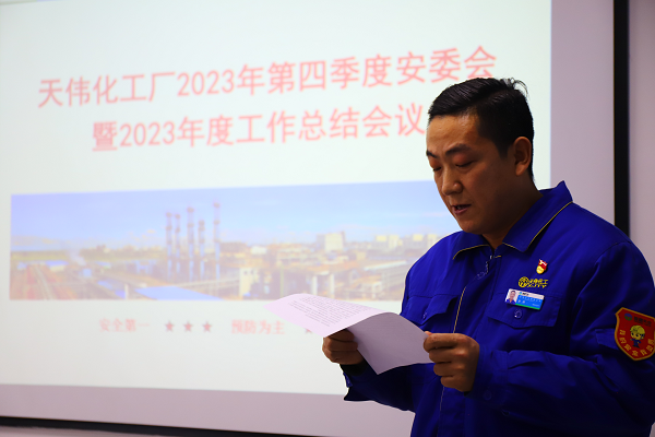 1月17日,新疆天業(yè)天偉化工廠召開2023年安全生產(chǎn)工作總結暨2024年度工作部署會議,全面分析總結2023年安全生產(chǎn)各項工作,持續(xù)提升安全生產(chǎn)治理水平。公司安全委員會全體成員、工會代表、全體安全員、員工代表參加了會議。
