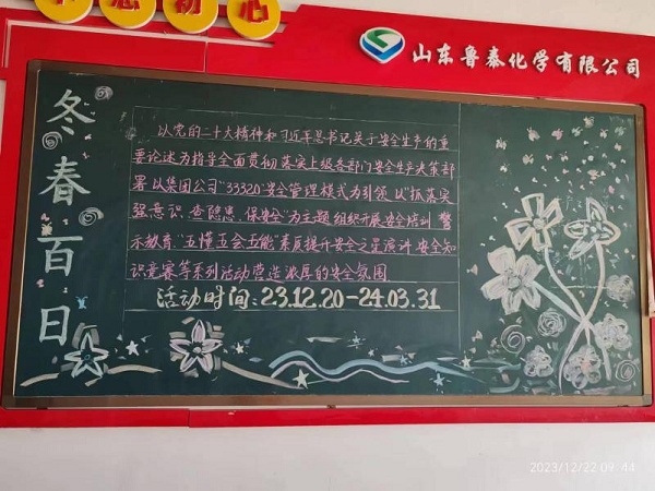 為深入貫徹集團(tuán)公司統(tǒng)一部署,扎實(shí)做好歲末年初和冬春兩季的安全生產(chǎn)工作,確保2024年各項(xiàng)工作開好頭、起好步,12月20日,山東魯泰化學(xué)有限公司啟動(dòng)“冬春百日安全競賽”活動(dòng)。本次活動(dòng)到2024年3月31日結(jié)束。