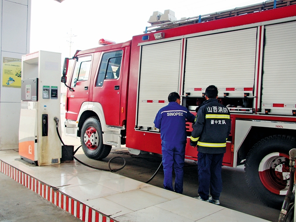 3月29日,山西省長治市沁源縣王陶鄉(xiāng)郭家坪村突發(fā)森林火災(zāi),約25個村莊和煤礦受到威脅。其中,山西石油長治沁源分公司所屬4座加油站均在火線范圍內(nèi)。火災(zāi)發(fā)生后,山西石油迅速展開自防自救工作,確保油站安全,同時迅速行動,積極開展搶險油品保障工作。截至目前,共為搶險救援車輛加注油品110噸,有效保障了搶險救援車輛用油。圖為加油站為消防及搶險車輛加油。