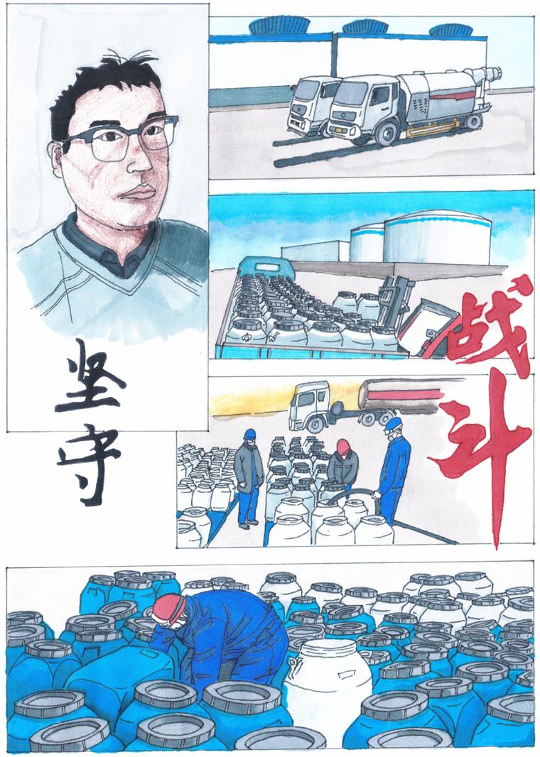 一桶、十桶、百桶、千桶……我們被待裝的空桶所包圍,我與同事們日夜奮戰(zhàn),不斷灌裝、裝車,其他分廠、科室行政人員不斷加入到我們的隊伍中。為了提高效率,我們創(chuàng)新裝車方式,提供灌裝、叉車、提運方式,外來車輛不等待、人員不下車即可裝車,既節(jié)省裝車時間,又減少人員傳播、隔離病毒。