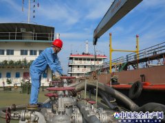 圖為成品油在裝船出廠中。 面對近期持續(xù)的高溫天氣,安慶石化油港廣大員工戰(zhàn)高溫斗酷暑,積極落實安全度夏措施,在做好自我防暑保護的同時,強化直接作業(yè)環(huán)節(jié)安全管理,創(chuàng)下成