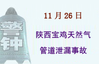 2013年11月26日,寶雞市一路上的天然氣管道被施工人員不慎挖斷,造成大量天然氣泄漏,緊急疏散居民500余人。