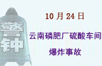 1984年10月24日,云南磷肥廠硫酸車間違章指揮焊工在配酸緩沖槽上動(dòng)火,發(fā)生爆炸事故,造成1人死亡,1人重傷,1人輕傷。