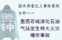 國外危險化學(xué)品典型事故 案例分析之七---- 墨西哥城液化石油氣站發(fā)生特大火災(zāi)爆炸事故 一、事故經(jīng)過和危害 1984年11月19日凌晨5時45分, 墨西哥城液化石油氣(LPG)站發(fā)生大爆炸, 造成