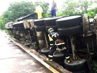 四川德陽一30噸濃硫酸槽罐車側(cè)翻泄漏 司機逃出