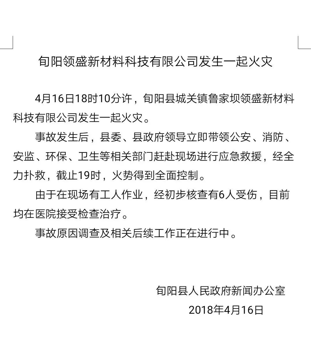 4月16日下午18點(diǎn)10分左右,旬陽(yáng)縣城關(guān)鎮(zhèn)魯家壩領(lǐng)盛新材料公司發(fā)生起火爆炸。