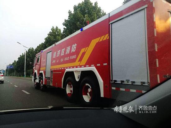 事故發(fā)生后,記者第一時間趕到了現(xiàn)場。17時記者路過濱河大道與羅程路時看到有消防車與120急救車正趕往現(xiàn)場。