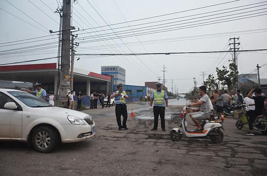 在羅莊區(qū)羅程路西高都派出所東150米路南的一處路口上,爆炸廠區(qū)靠近羅程路的路段已經(jīng)設(shè)置了警戒區(qū),周邊嚴(yán)禁非救援人員入內(nèi)?,F(xiàn)場有大批群眾趕來圍觀,路口兩側(cè)停放了不少汽車。