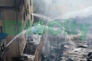 之前目擊者稱“濃煙一度整個擋住鑫盛達”,有市民以為那是夸大其詞。而從現(xiàn)場來看,靠近倉庫的幾棟居民樓墻壁均已被熏黑。