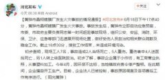 6死1重傷 企業(yè)法人被控制) 河北省人民政府新聞辦公室官方微博截圖。 中新網(wǎng)6月19日電 據(jù)河北省人民政府新聞辦公室官方微博消息,6月18日下午17點40分,河北黃驊市晶柯鍍膜廠發(fā)生火