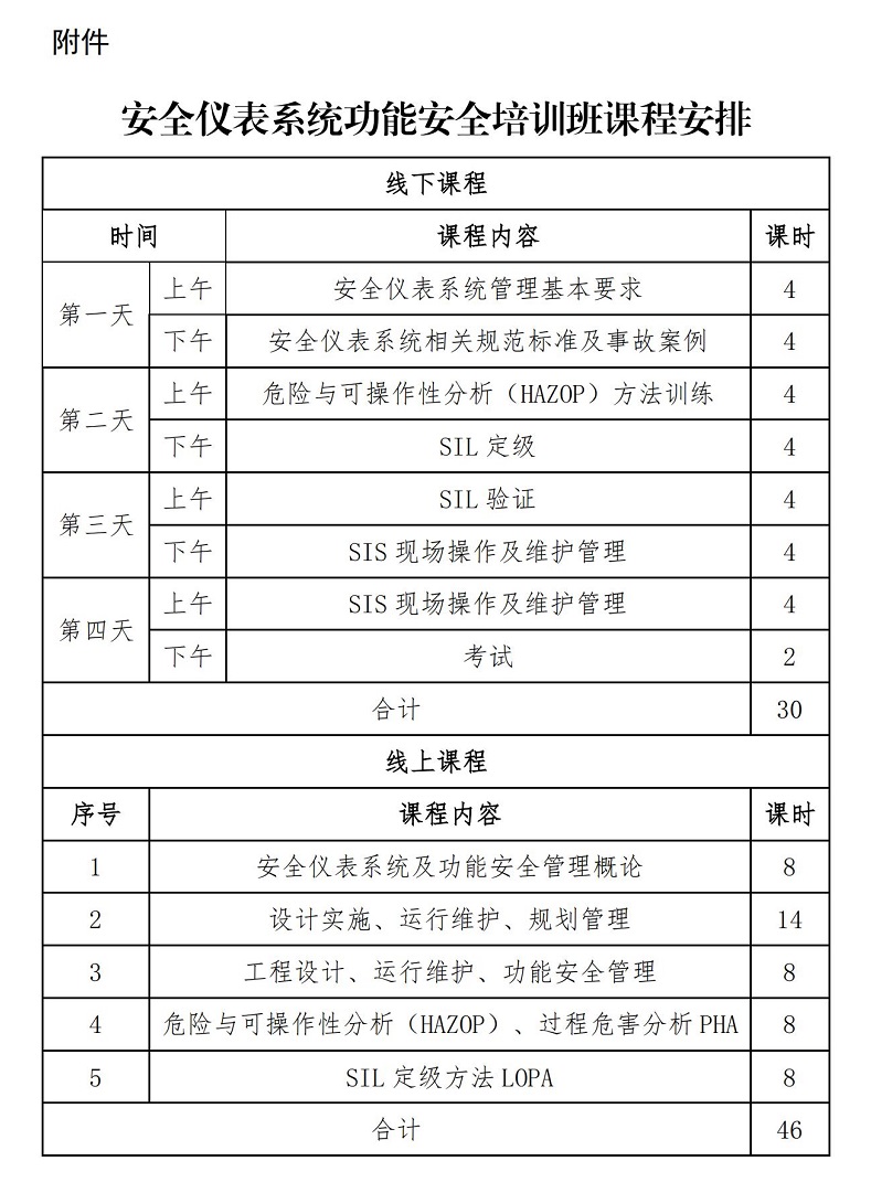 附件:安全儀表系統(tǒng)功能安全培訓(xùn)班課程安排