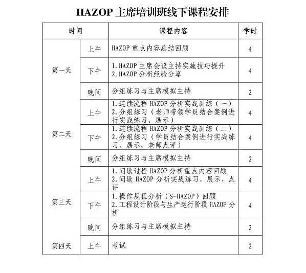 1.學(xué)員參加線下培訓(xùn)之前需完成HAZOP主席線上課程的學(xué)習(xí)。