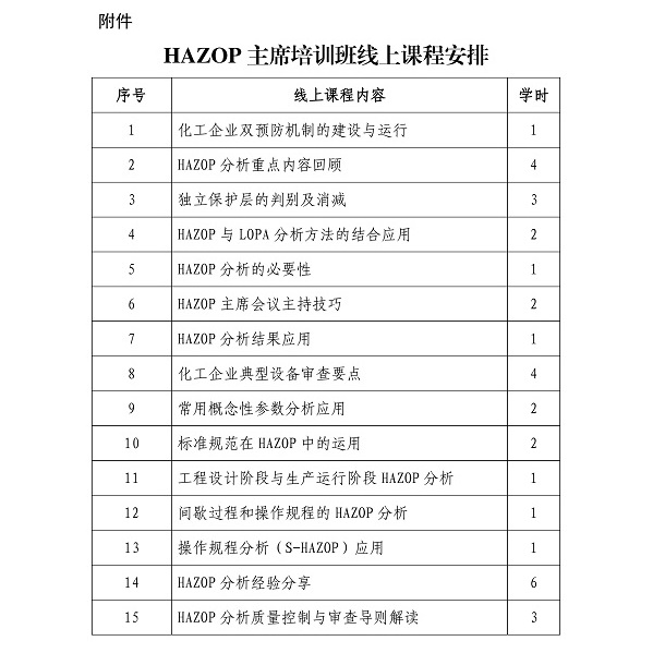 關(guān)于舉辦南通市危險(xiǎn)與可操作性分析(HAZOP)主席培訓(xùn)班的通知