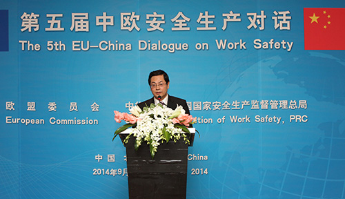 孫華山在致辭中指出,中國政府高度重視安全生產工作,強調以人為本、安全發(fā)展,明確要求各地區(qū)、各行業(yè)、各企業(yè)的發(fā)展,必須建立在安全生產條件具備、勞動者生命安全健康得到切實保障的基礎之上,安全發(fā)展戰(zhàn)略得到全面深入貫徹實施,取得了積極成效。他表示,國家安全監(jiān)管總局非常重視安全生產領域的國際交流與合作,注重發(fā)揮中外安全生產交流與合作的重要作用,搭建了對話、論壇、展覽、項目等多種形式的平臺與載體,初步形成了全方位、多渠道的對外開放格局。中國政府愿意與國際社會和世界各國一道,積極創(chuàng)新交流與合作機制,及時共享分享好經驗、好做法,共同應對安全生產各種挑戰(zhàn),不斷促進中國乃至世界各國安全生產事業(yè)的發(fā)展進步。他強調,要全力推進中歐安全生產合作再上新臺階。中方愿意繼續(xù)與歐方一道精心把中歐安全生產對話機制建設好、維護好、利用好,合力把中歐高危行業(yè)職業(yè)安全與健康項目執(zhí)行好、實施好、落實好,充分全面交流雙方在政策、法規(guī)、技術、管理等各方面經驗成果,有力促進中歐雙方安全生產與職業(yè)健康工作發(fā)展向前。