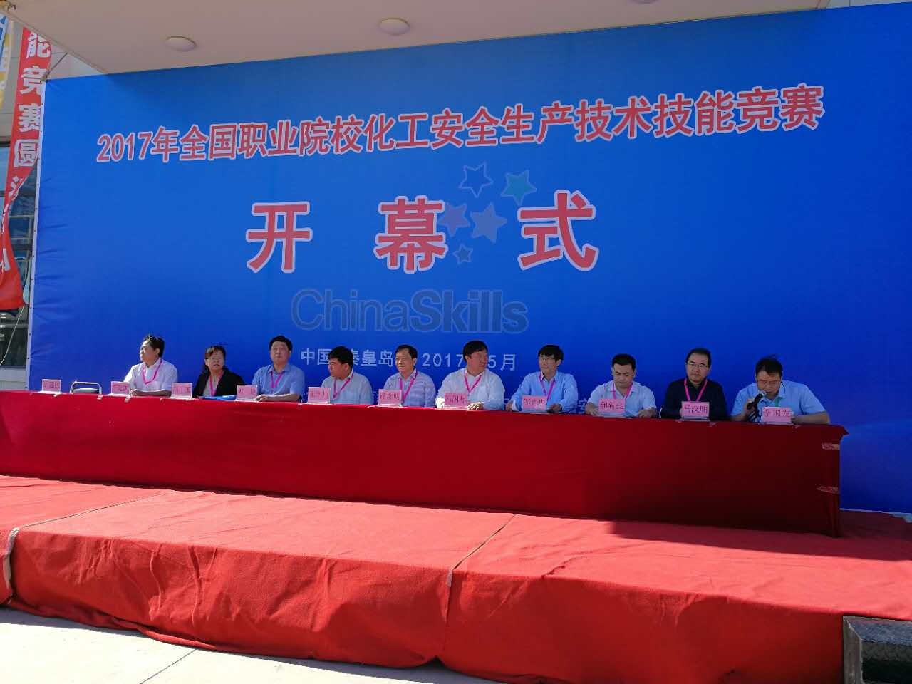 5月25日,由全國職業(yè)教育教學指導委員會(簡稱安全行支委)、中國化學品安全協(xié)會主辦,化工安全專業(yè)分委員會承辦的2017年全國職業(yè)院校“化工安全生產(chǎn)技術技能競賽”在秦皇島華北科技學院實訓基地隆重開幕。國家安全監(jiān)管總局監(jiān)管三司、人事司相關處室負責人,教育部行指委工作辦公室、全國安全職業(yè)教育教學指導委員會領導同志,秦皇島市相關領導同志出席競賽開幕式。來自全國17個省市職業(yè)院校的43支代表隊全體隊員、來自第三方職業(yè)院校和企業(yè)的教師、安全管理人員組成的36名裁判員隊伍及工作人員參加了開幕式。中國化學品安全協(xié)會副理事長、秘書長路念明出席開幕式并致辭。