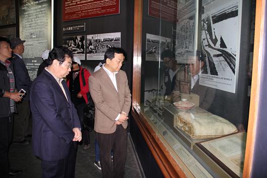 圖2 安監(jiān)總局總工程師、監(jiān)管三司司長(zhǎng)王浩水,中國(guó)化學(xué)品安全協(xié)會(huì)秘書長(zhǎng)路念明參觀中國(guó)人民抗日戰(zhàn)爭(zhēng)紀(jì)念館