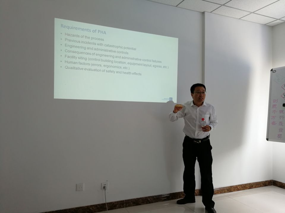 本項目6月27日正式啟動,協(xié)會副總工李文悅、教育培訓部副主任徐志杰為松原石化安全管理及專業(yè)技術人員進行培訓,授課內容為“安全儀表系統(tǒng)設置及其功能安全”、“工藝危害分析(PHA)”、“保護層分析(LOPA)”。6月28日,召開HAZOP分析會議,對各節(jié)點進行劃分和設置偏離,分析產生偏離的原因及可能發(fā)生的后果,分析現有安全措施,提出建議措施等。