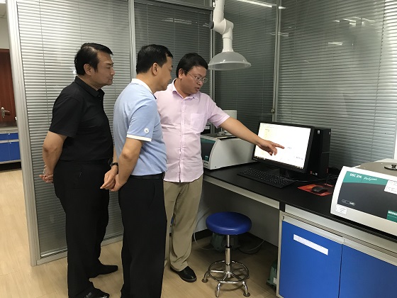 路念明一行先后參觀了前處理室、反應(yīng)量熱室、絕熱加速量熱室等實驗室,詳細詢問了實驗程序,觀看了技術(shù)人員操作實驗儀器的過程,對研究院的實驗規(guī)模、技術(shù)水平和人員能力給予肯定。
