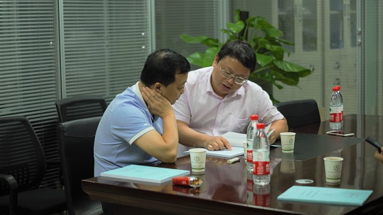 參觀實驗室后路念明查閱了研究院一份關(guān)于“甲基乙烯基二氯硅烷項目”的化學(xué)反應(yīng)安全風(fēng)險研究與評估報告,著重就其中部分參數(shù)的來源與謝剛院長進行了深入探討,強調(diào)要科學(xué)嚴謹?shù)刈龊脤嶒灪妥珜憟蟾妫瑸槠髽I(yè)提供詳實的數(shù)據(jù)支持。