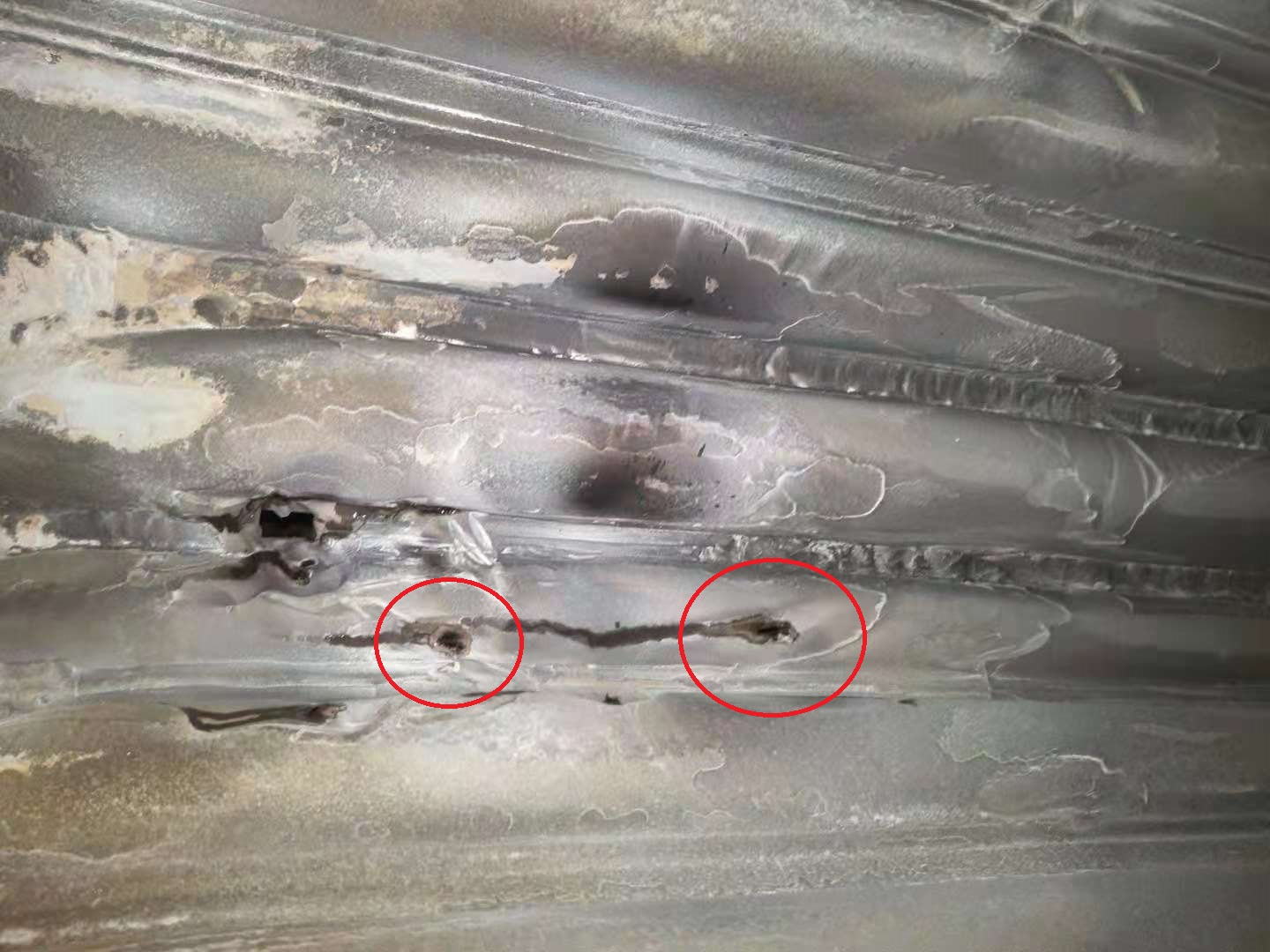 11月19日晚11點(diǎn)左右,當(dāng)班人員發(fā)現(xiàn)2號鍋爐“汽水差計(jì)量表”顯示數(shù)值為10~20噸(正常值為0或負(fù)值),懷疑鍋爐水冷壁管泄漏,觀察運(yùn)行。11月20日9點(diǎn)左右,當(dāng)班人員發(fā)現(xiàn)鍋爐汽水差計(jì)量表數(shù)值增加到26噸,隨即停爐檢查。經(jīng)檢查發(fā)現(xiàn),爐膛前墻東北側(cè)衛(wèi)燃帶上方1米處有2根水冷壁管穿孔,水冷壁管漏水,問題確定后,企業(yè)開始組織維修。