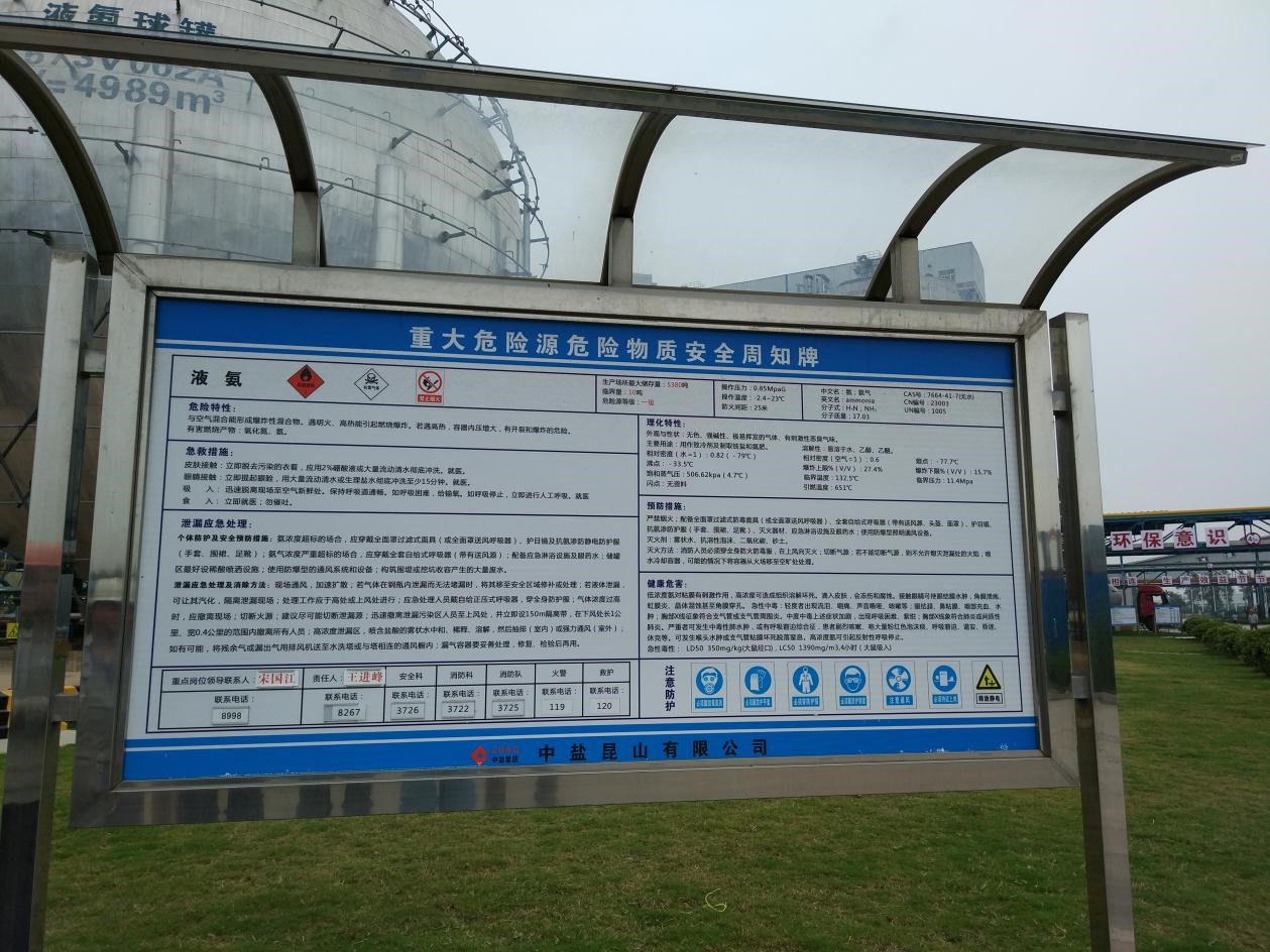 圖1 企業(yè)液氨重大危險源周知牌級別、責任人、聯(lián)系電話、處置措施等內容詳細