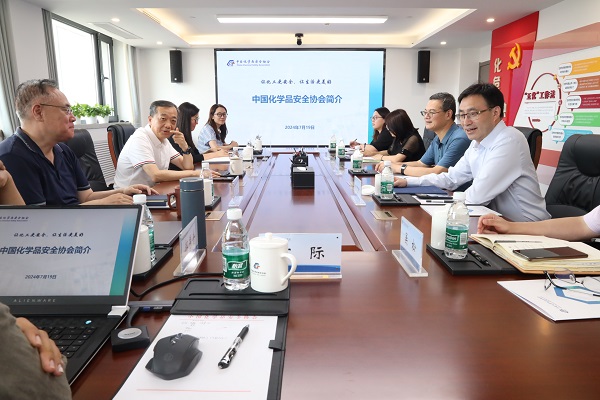 7月19日下午,中國職業(yè)安全健康協(xié)會黨委委員、副理事長楊玉洲,副理事長陳志剛帶隊到中國化學品安全協(xié)會進行工作交流,中國化學品安全協(xié)會黨委書記、常務(wù)副理事長兼秘書長路念明參加座談。