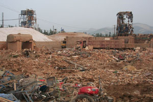 安徽省滁州市鳳陽縣大廟鎮(zhèn)晶鑫礦業(yè)公司辦公樓炸藥爆炸現(xiàn)場(chǎng)。