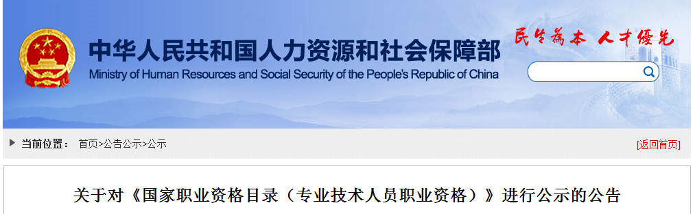 關(guān)于對《國家職業(yè)資格目錄(專業(yè)技術(shù)人員職業(yè)資格)》進(jìn)行公示的公告