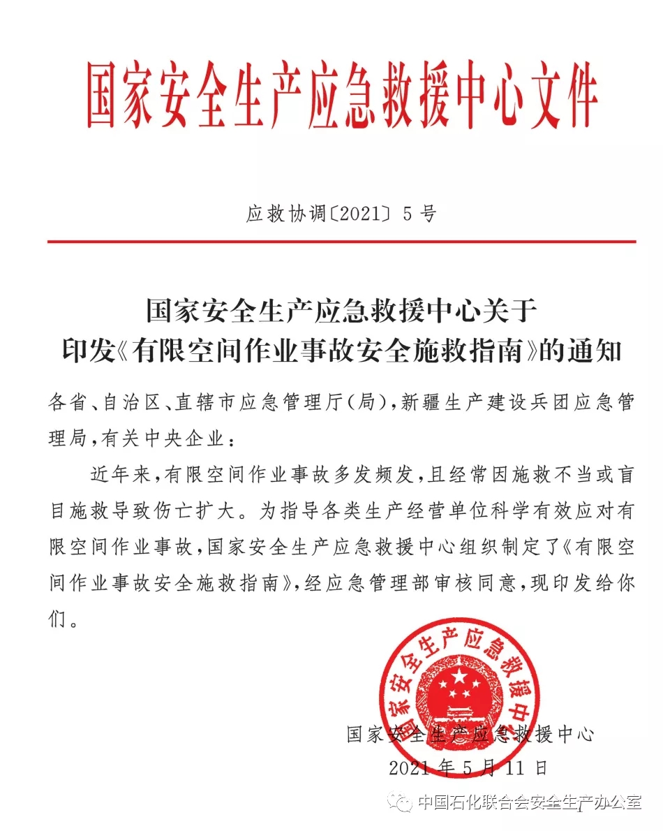 國家安全生產(chǎn)應(yīng)急救援中心發(fā)布《有限空間作業(yè)事故安全施救指南》