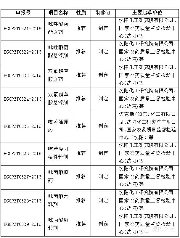 表 工信部擬組織制定9項(xiàng)農(nóng)藥產(chǎn)品的行業(yè)標(biāo)準(zhǔn)